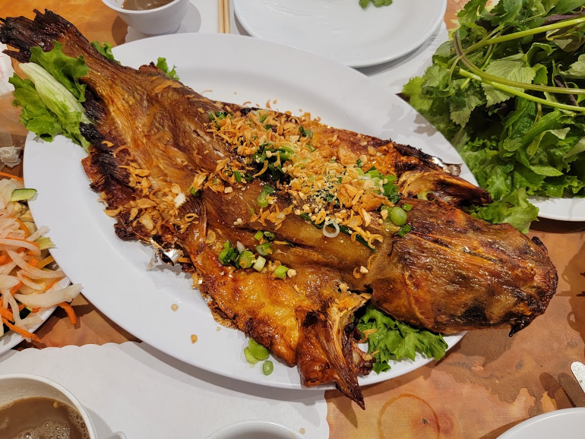 One of the must-try dishes at Nam Giao Restaurant is the Banh Xeo, a Vietnamese-style savory pancake that is crisped to perfection and filled with shrimp, pork, and bean sprouts. It's served with fresh herbs and dipping sauce that makes each bite burst with flavor. If you’ve never had it before, this dish is a great introduction to the restaurant’s skill in crafting balance and texture in every dish.